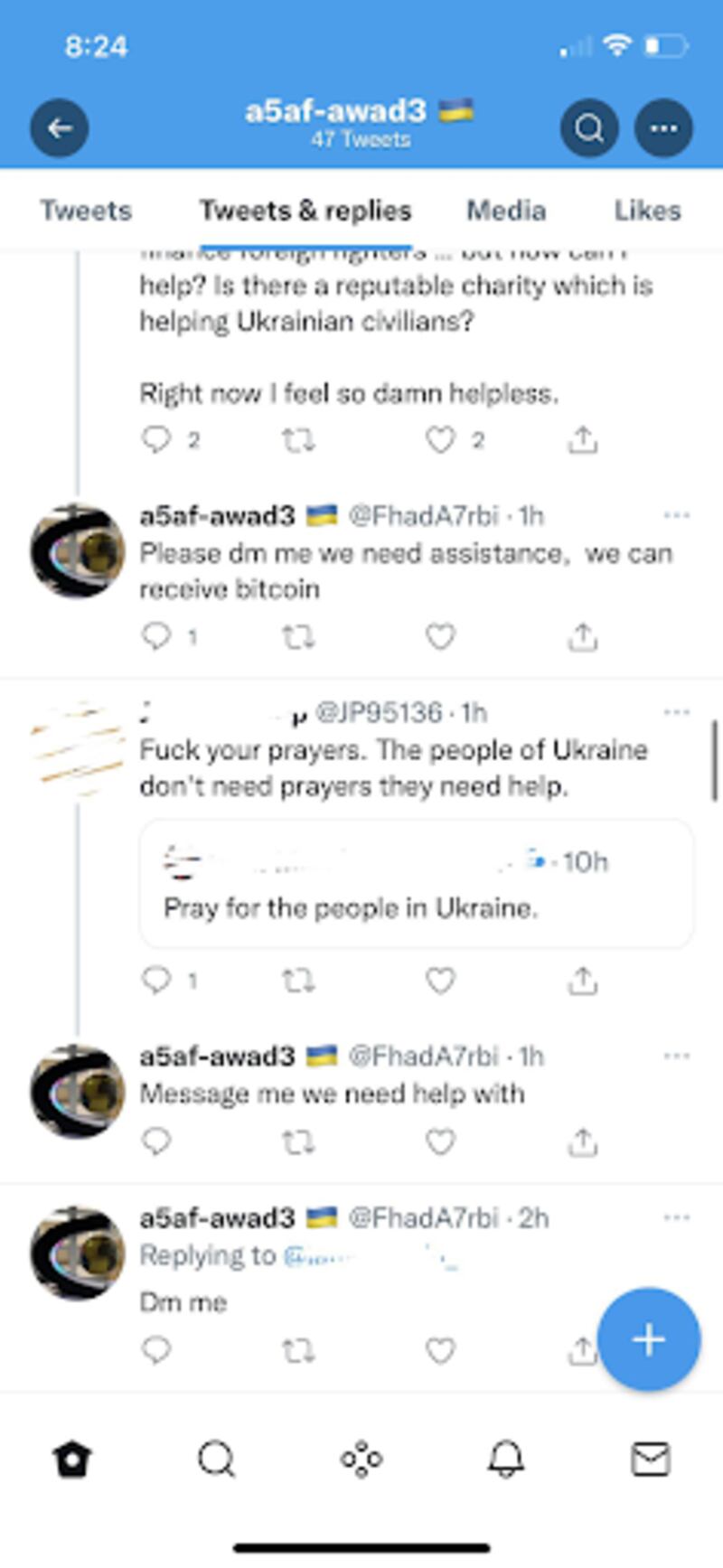 La cuenta es llevada por Yarema Dukh, una estratega de comunicaciones que la creó en 2016. La persona indicó a Buzz Feed News que el tuit y la billetera digital eran un plan del gobierno, y que creía que los fondos irían “a exterminar a tantos ocupantes rusos como fuera posible”.