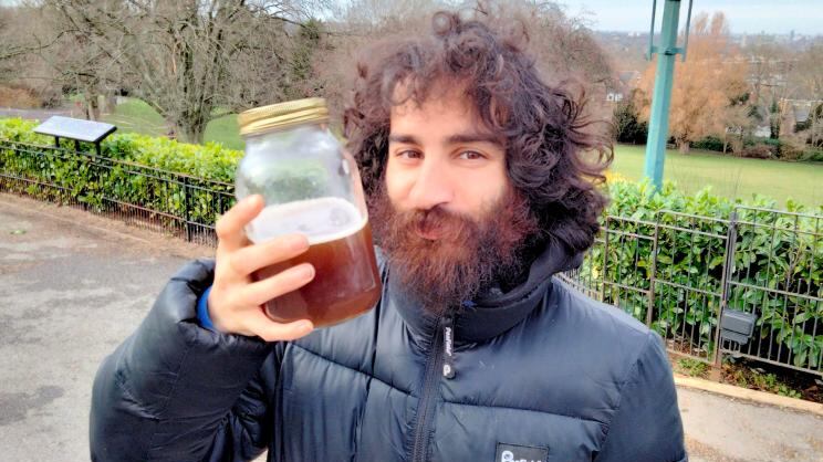 Un hombre de 34 años vegano con unos tornillos medio sueltos está convencido que beber orín lo ha curado de depresión y lo hace ver 10 años más joven.