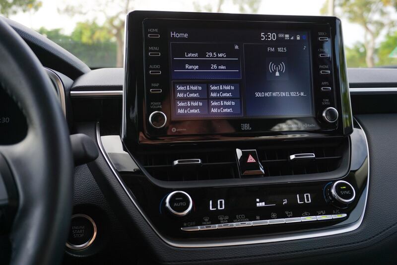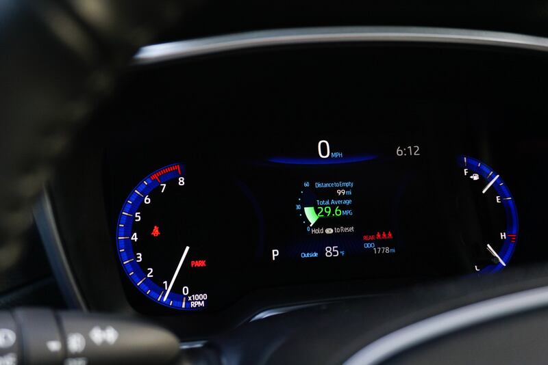 La suspensión trasera en los modelos de tracción delantera es el mismo eje de torsión que los modelos base del Corolla sedán mientras que los modelos con tracción total cambian a una configuración independiente más sofisticada. Habiendo dicho, muy pocos conductores podrían notar alguna diferencia entre ambas y menos bajo un uso rutinario. Por el momento solo hay un motor disponible: un 4 cilindros de 2.0 litros con 169 caballos de fuerza y 150 libras-pies de torque y transmisión CVT pero aquí tiene la encomienda de cargar con 100-300 libras adicionales dependiendo la configuración. Aunque es imperceptible detrás del volante, lo normal es que la Corolla Cross sea algo más lenta que un Corolla en aceleración pero al igual que la suspensión, esto es algo que nadie notará además de que será irrelevante para la inmensa mayoría de los compradores. La economía de combustible estimada es de 31 millas por galón ciudad, 33 autopista y 32 combinado para los tracción delantera mientras que los AWD bajan levemente a 29 ciudad, 32 autopista y 30 combinado; yo tuve un promedio rondando las 30 millas por galón con tracción delantera y recorrí casi 400 millas con un tanque de gasolina, un gran detalle en tiempos de cifras récord en el precio de la gasolina. La experiencia de manejo se puede resumir como un Corolla como cualquier otro solo que ahora a mayor distancia del suelo, a duras penas se puede notar alguna diferencia por el peso y centro de gravedad adicional que lleva la Cross. Si has tenido o manejado un Corolla anteriormente te será inmediatamente familiar y de seguro quedarás encantado.