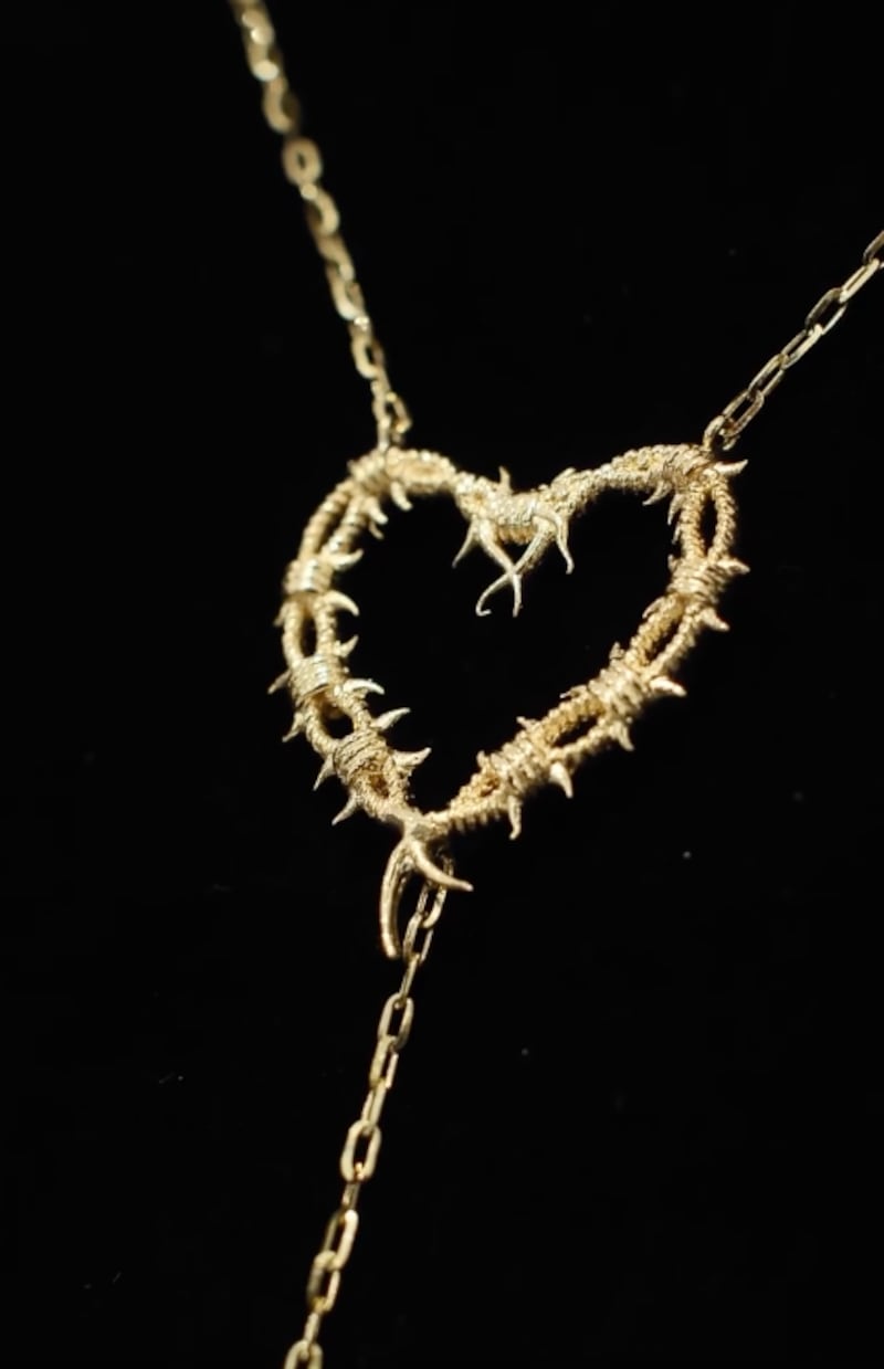 El collar representa al tatuaje de corazón con espinas de la artista. Es algunas historias se pudo ver que la joyería compartió imágenes del collar que le regalaron a la artista y luego se vio otras publicaciones de las cantantes donde la colombiana le había dado ese collar a la mexicana, que según se ve en imágenes, es parecido.