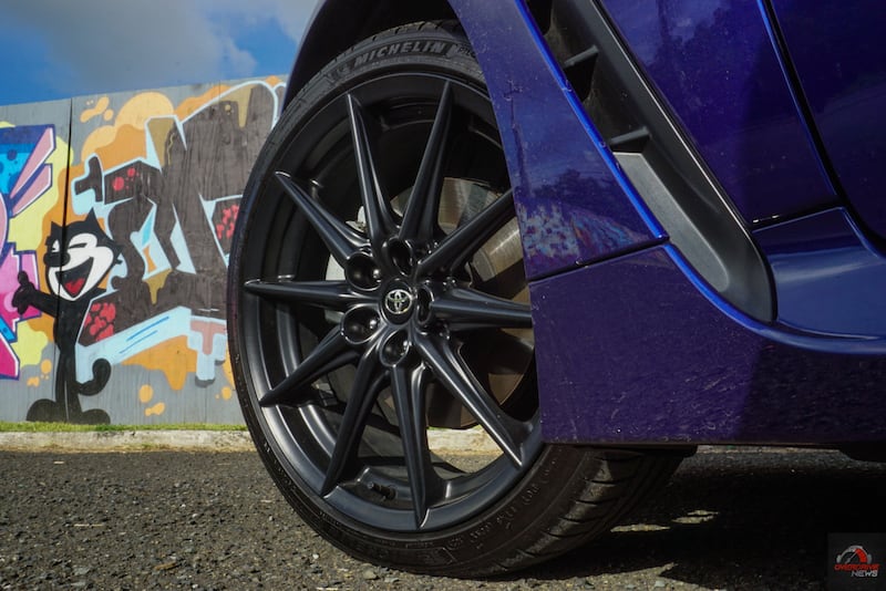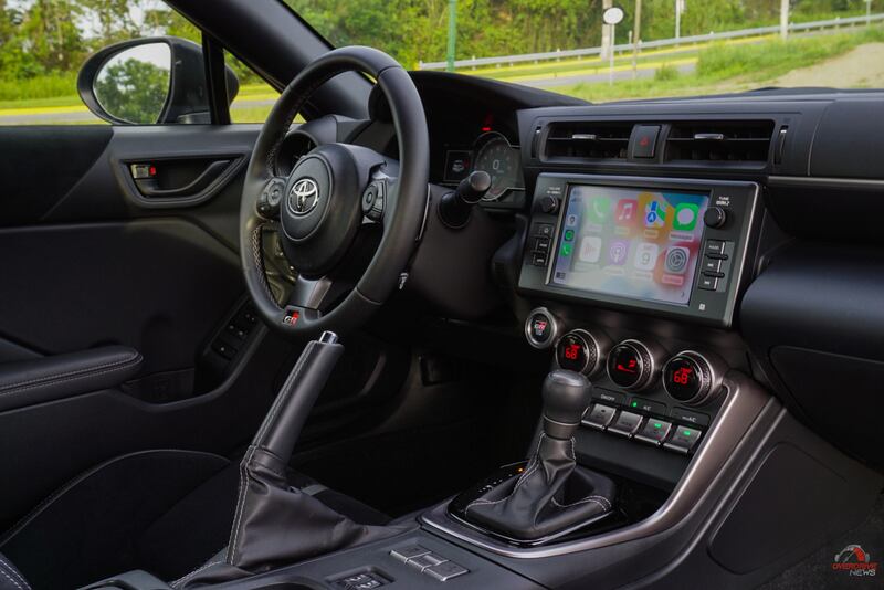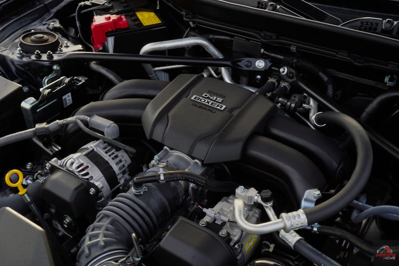 El mayor punto de controversia desde sus orígenes como el Scion FR-S siempre giró en torno al motor. Aunque el consenso es que necesitaba más músculo, un sector abogaba por un turbo mientras que otro solo pedía un poco más de caballaje y torque. Toyota y Subaru optaron nuevamente por un motor aspirado, citando razones de costo y peso para haber optado en contra de la ruta turbo; si estás dispuesto a sacrificar tu garantía, habrán muchas compañías dispuestas a venderte un kit turbo o supercharger. De todas formas, la respuesta a las quejas en ese departamento fueron atendidas con un motor Bóxer más grande de 2.4 litros que es en esencia un motor de WRX sin el turbo. El 86 anterior variaba en caballaje y torque dependiendo la transmisión: con transmisión manual producía 205 caballos y 156 libras-pies de torque mientras que el automático bajaba a 200 y 151 respectivamente. El GR86 produce 228 caballos de fuerza con ambas transmisiones pero más importante aún, 184 libras-pies de torque disponibles a las 3,700 revoluciones por minuto en lugar de las 5,400 como el carro anterior. El famoso punto muerto de torque en el rango medio del 86 anterior fue eliminado por completo y el resultado es un motor que se mantiene produciendo hasta su línea roja de 7,300 revoluciones. No es uno de esos carros que te pega en el asiento durante aceleración fuerte pero sin duda el incremento en caballaje es notable y más que bien recibido.