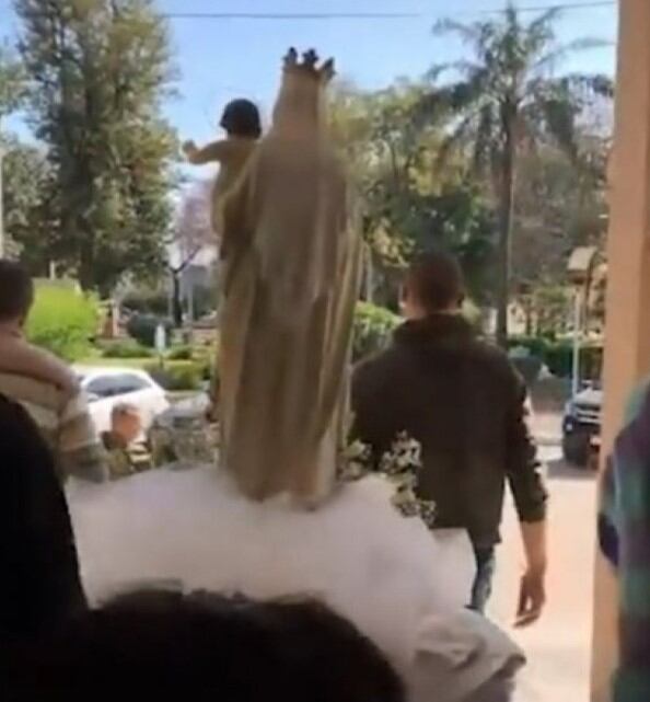 Iban saliendo de la iglesia con la imagen de la virgencita cuando ocurrió lo peor y todo quedó grabado.