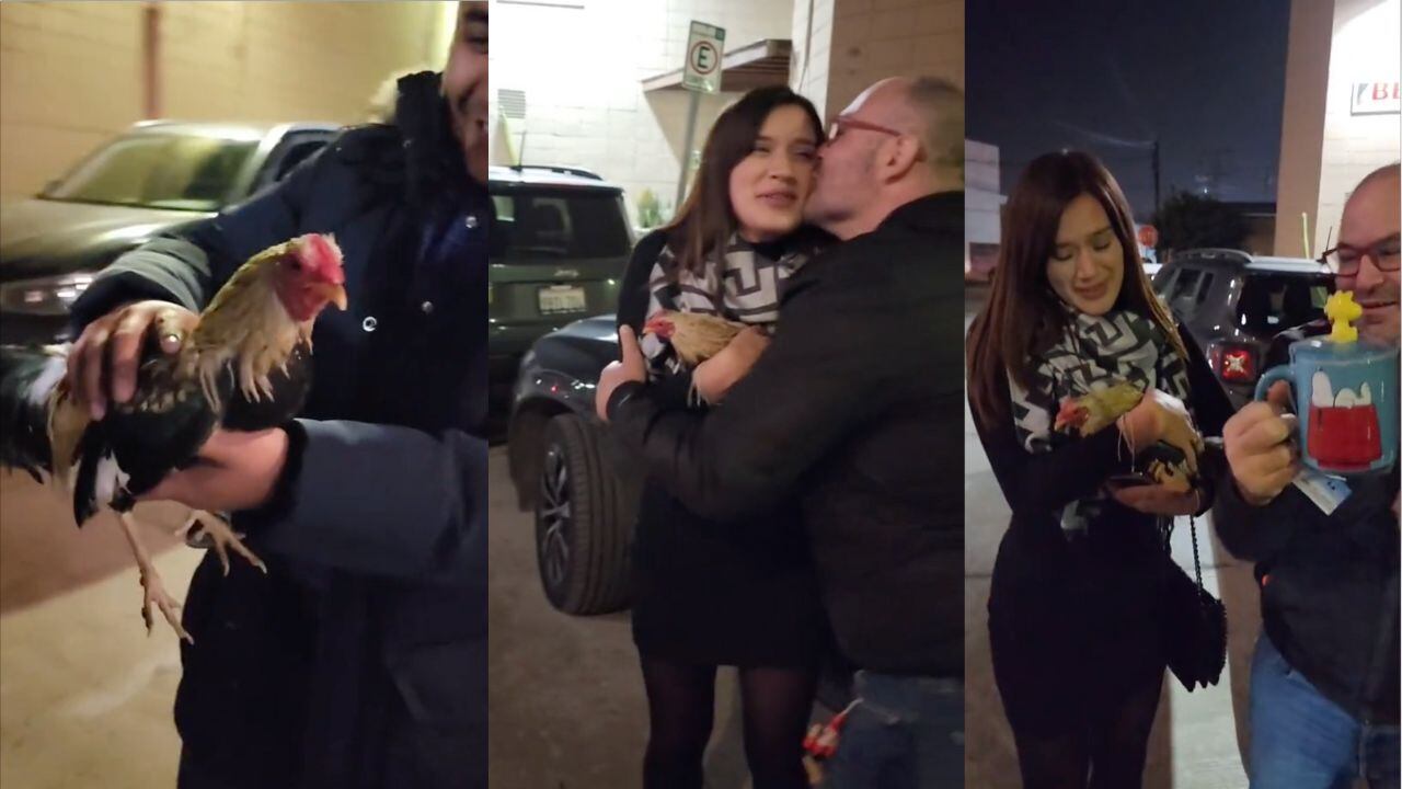 Muchas personas se preocupan por qué regalar durante el intercambio navideño. Los seres queridos piensan en la mejor opción, sin embargo, algunos se preocupan de equivocarse entre tantas posibilidades. Por eso, un joven optó por ser original y regaló un gallo. Sí, el joven le regalo a una mujer un ave para que ‘nunca se le haga tarde’.