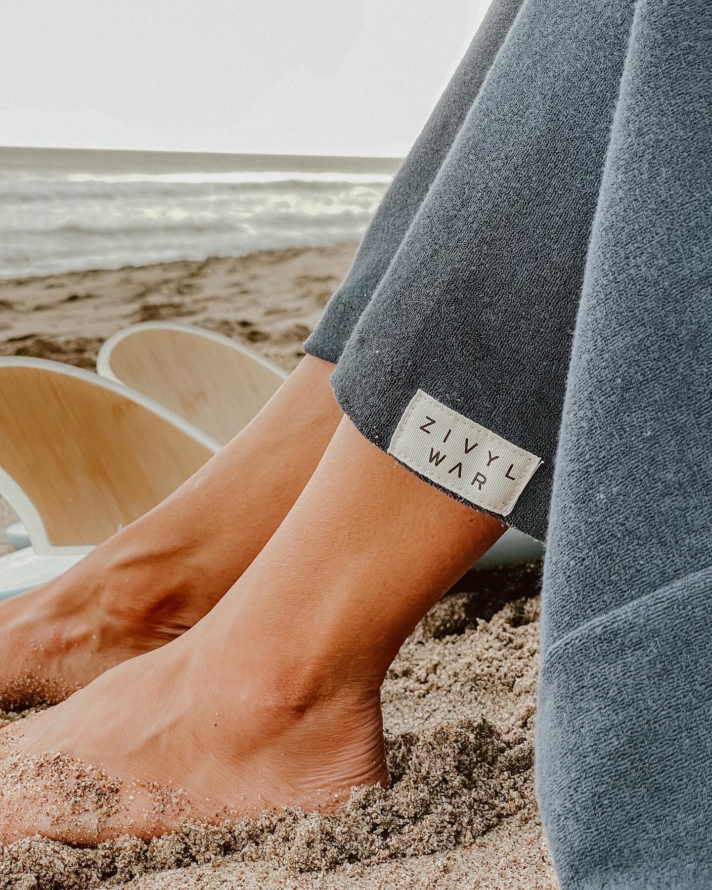 “ZIVYL WAR nace, porque mi esposo y yo estábamos viajando mucho y explorando el surf. Siempre usábamos ponchos de toallas para cambiarnos de la ropa mojada después del surf pero le decía: “esto está mal hecho, tendrían que hacerlo con una tela más finita”. Ya que estaban hechos con toallas gruesas y a la hora de empacar ocupaban mucho espacio. La marca comienza con la idea de hacer unas t-shirts orgánicas, y cuando estaba comprando telas encontré la tela terry cloth y cuandi fui con la fábrica les pedí que me hicieran una muestra del poncho con esa tela. Ahí arranco todo”, contó Díaz.