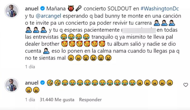 Anuel AA no se queda calla’o y le contestó a Arcángel con una indirecta por redes. (Bien porquería)