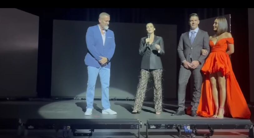 La productora Erika Ramón y los presentadores Pepe Calderón y Nicole Chacón salieron a la tarima a las 8:20 p. m. para dar un mensaje de inspiración, y calmar un poco el público que vive de la energía para poder grabar su contenido.