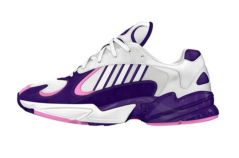 • adidas Yung-1 Frieza: Inspirada en el villano Frieza, esta zapatilla presenta colores morado, blanco y dorado, junto con detalles que recuerdan su armadura y su forma final.