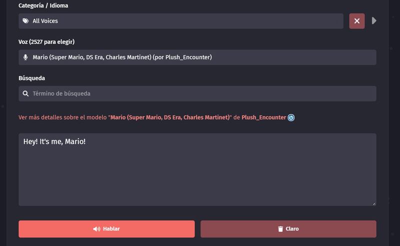 Es importante destacar que se trata de la voz del actor de doblaje Charles Martinet, aunque la plataforma ofrece varias opciones y tipos de voz de Mario.