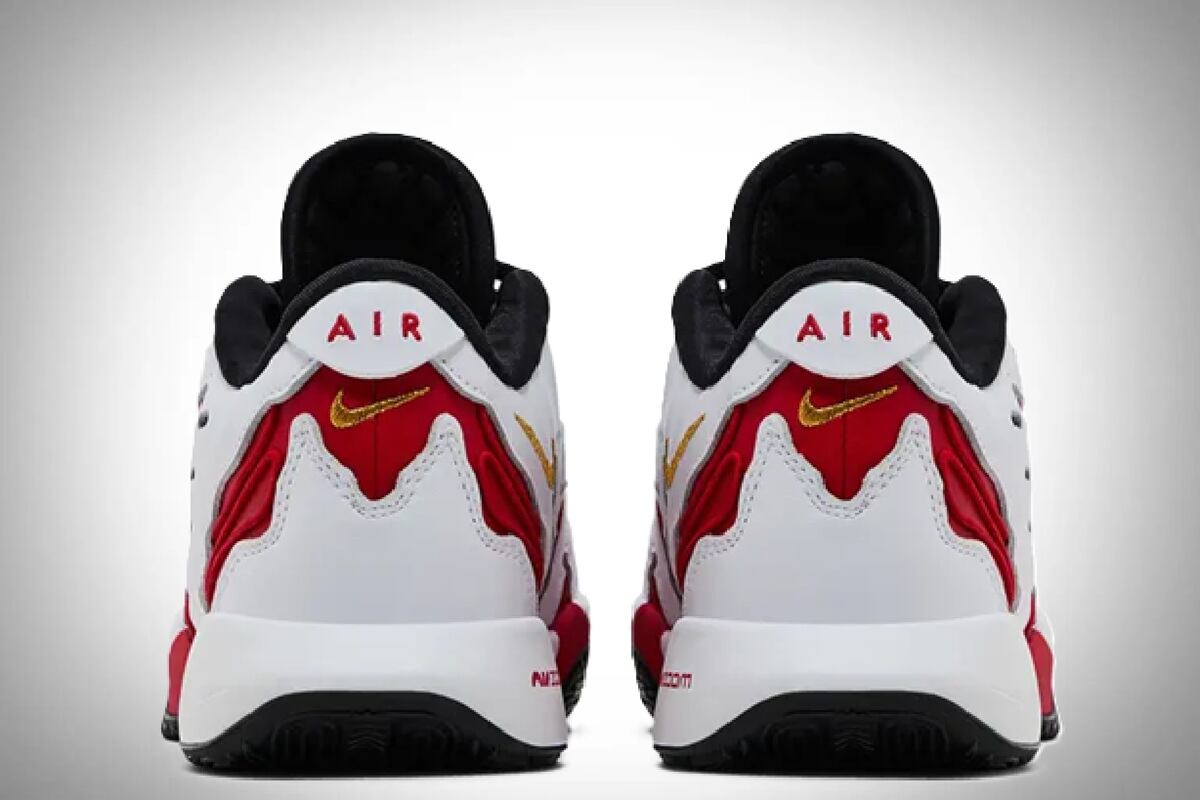 Las líneas rojas sobre el cuero pintado de blanco, parece rasgadas de las garras de un T-Rex, pero la realidad es que son la representación del fuego interno del basquetbolista norteamericano.
