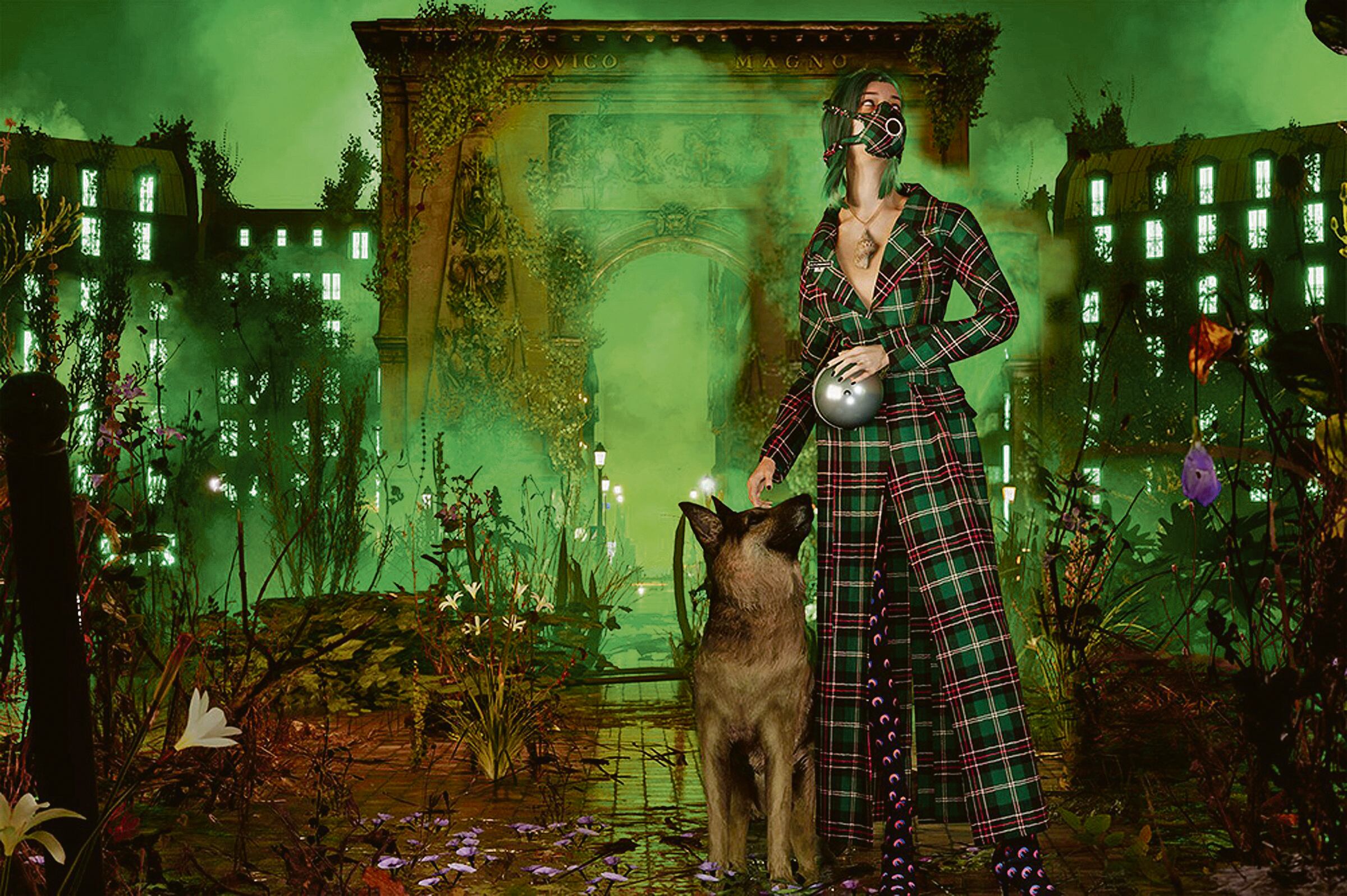 Rick Farin y Claire Cochran crearon un universo distópico para la diseñadora Marine Serre, donde un París devastado es escenario de sofisticados humanoides que usan objetos desechados como prendas de moda.
