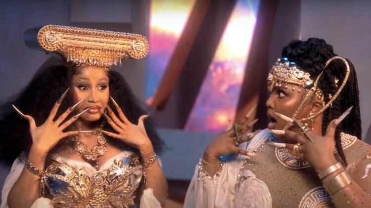 Y las joyas que usan ambas artistas en su colaboración “Rumors”,precisamente apuntan a la accesorización y caracterización del cuerpo con este tipo de piezas como armadura.