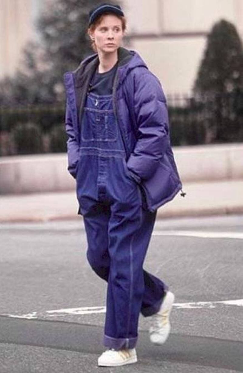 En una de las primeras temporadas, al toparse por accidente con su ex, que la hizo llorar por años y quien la reemplazó por otra, Miranda lleva un look, que a pesar de ser señalado en su época, se compone mucho de lo que usan las mujeres hoy: overoles, gorros, tenis y una maxi chaqueta, siendo el epítome de lo cool.