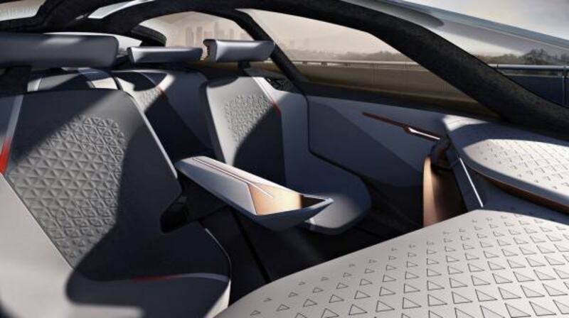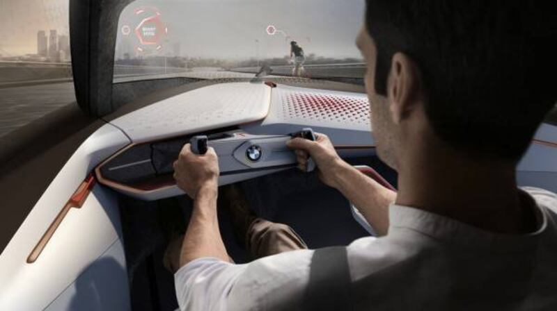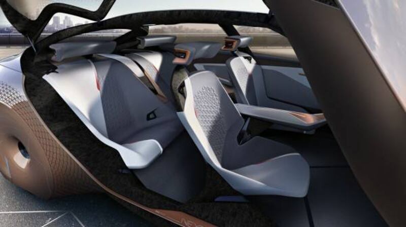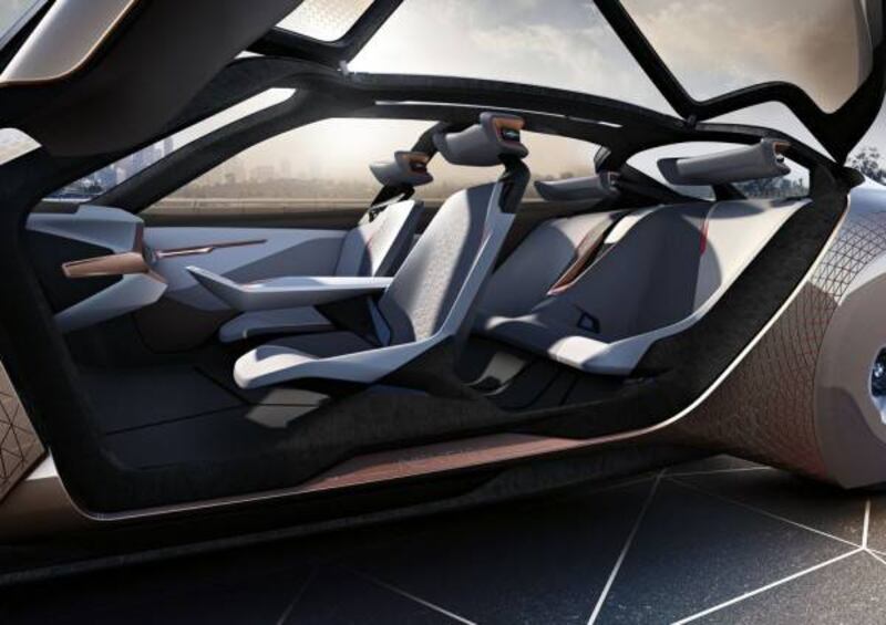 El BMW Vision Next 100 elimina el dash o panel de instrumentos lleno de botones y controles por uno minimalista que en su lugar cuenta con 800 triángulos integrados a los que la empresa ha llamado Alive Geometry (geometría viva) que interactuarán con el conductor y los pasajeros a través de movimientos y gestos. Adicional, el cristal delantero o parabrisas incopora la realidad virtual para brindar información a los tripulantes.