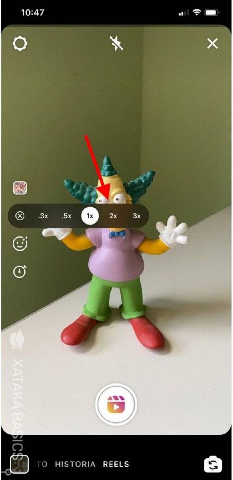 Por ahora, Instagram Reels te permite elegir entre cinco velocidades de reproducción, dos de ellas a cámara lenta y dos de ellas a cámara rápida. Para que el vídeo final sea a cámara lenta, elige .3x o .5x., y para que sea más rápido de lo normal, pulsa 2x o 3x. La velocidad normal es 1x.