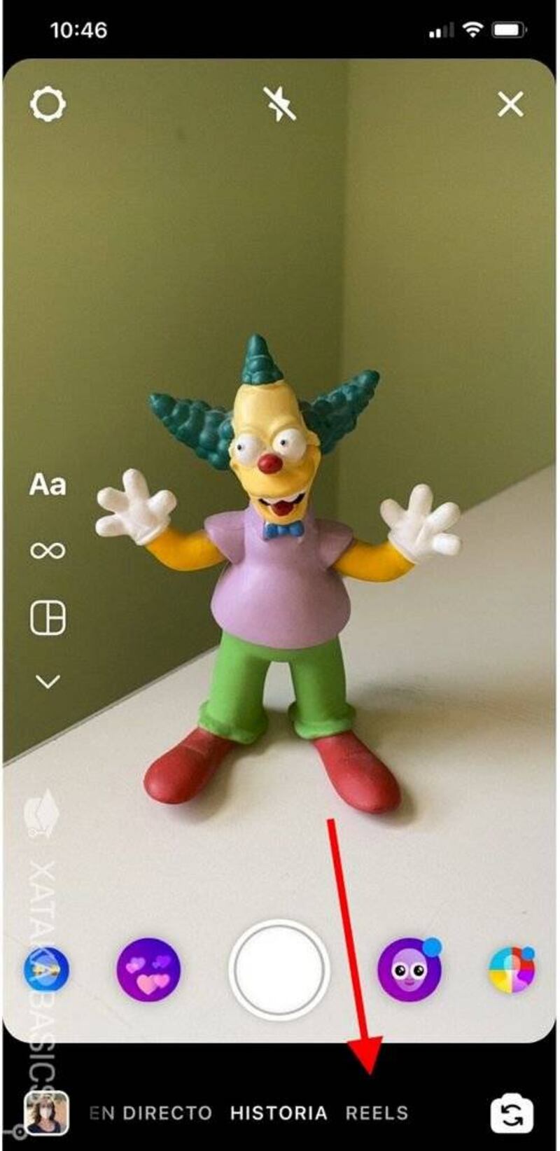 Si tu móvil tiene los Reels activados, verás que la interfaz de la cámara ha cambiado para tener ahora tres apartados: En directo, Historia y Reels. Toca en este último para empezar a grabar tu primer Reel.