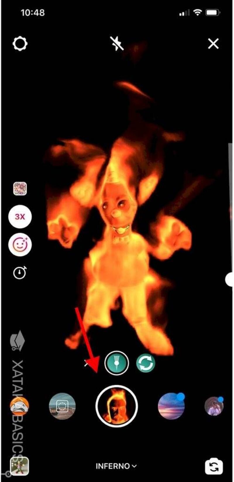 Por supuesto, no podían faltar en Instagram Reels los efectos. Puedes elegir el efecto o filtro que quieres que se aplique a tu vídeo tocando en el tercer botón de la barra de herramientas empezando por arriba, el de la cara.