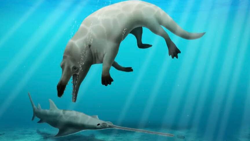 Descubren fósil de ballena de cuatro patas que caminaba por la tierra y nadaba en el agua