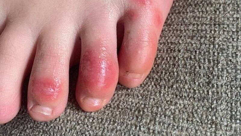 Les llaman “dedos de pie COVID” porque están rojos e hinchados, adoloridos y a veces con picazón, algo que normalmente se observa en los pies y las manos de las personas que han pasado mucho tiempo al aire libre en el frío.
