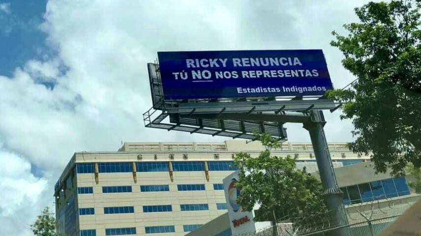 La periodista de Jay y sus Rayos X, Valeria Collazo compartió en su cuenta de Facebook una imagen de los “billboards” firmados por “Estadistas Indignados” que lee: “Ricky renuncia, tú no nos representas”.