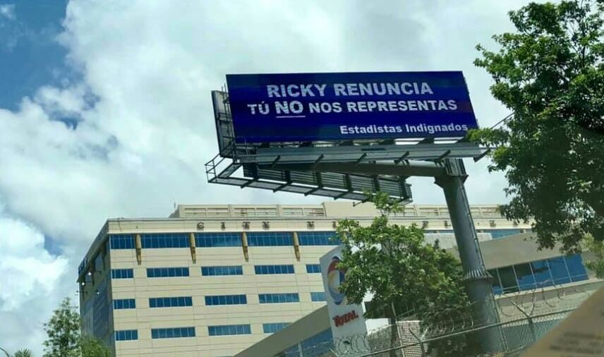 La periodista de Jay y sus Rayos X, Valeria Collazo compartió en su cuenta de Facebook una imagen de los “billboards” firmados por “Estadistas Indignados” que lee: “Ricky renuncia, tú no nos representas”.