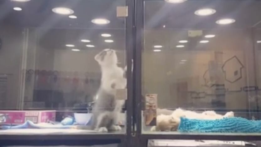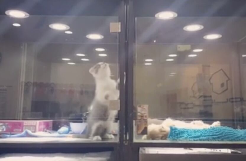En un intento por el amor entre los animales, un gatito logró lo que pareció imposible. Como una misión imposible, este felino logró escaparse del cubículo de cristal de la tienda de mascotas donde vive para visitar a su vecino en el cubículo de al lado.