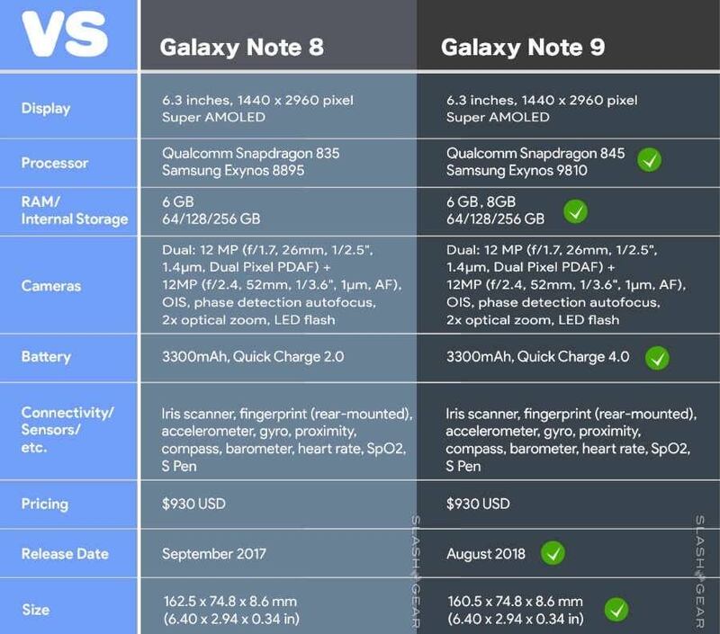 Los chicos de SlashGear han publicado lo que serían las especificaciones del nuevo Galaxy Note 9. Eso sí, hasta que Samsung no suba a escena a presentar el esperado teléfono, nada puede ser confirmado. Con esto dicho, una gráfica nos muestra lado a lado cómo compara el Note 9 frente al actual Note 8 en términos de especificaciones y precio.