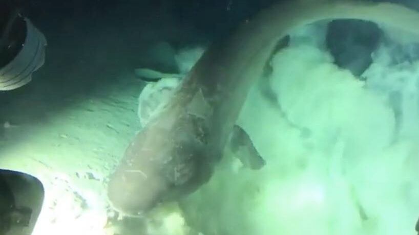 El del video corresponde a un Tiburón Peineta o Hexanchus Griseus, por su nombre científico y es una de las “razas” más antiguas que existen de este animal. Su avistamiento es de altísima complejidad ya que suele estar en el fondo del mar. De hecho, este video se consiguió a más de mil metros de profundidad.