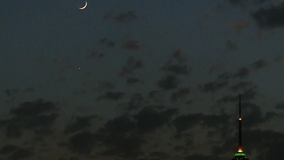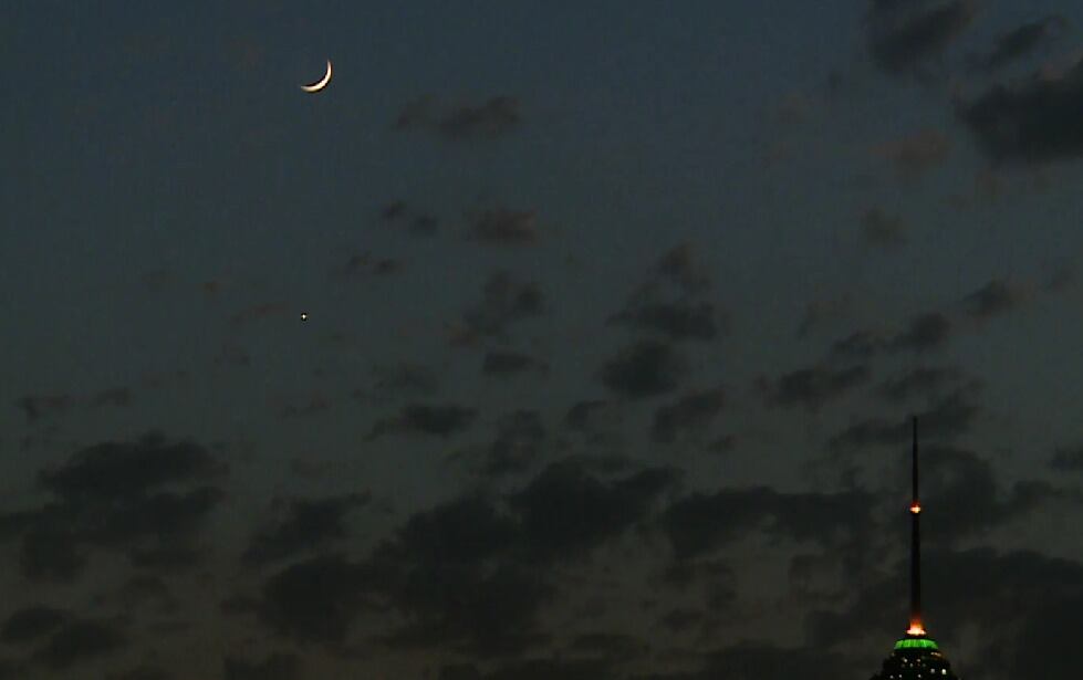 Las imágenes filmadas en Teherán captan el fenómeno astronómico poco frecuente, acompañado con una luna creciente.