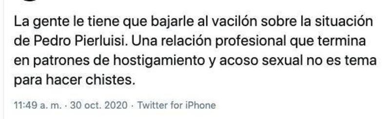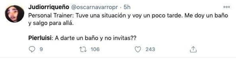 Tuits y posts de indignación por doquier, varios memes y hasta un video en el que se almuerzan al señor Pedro Pierluisi al son de Wisin y Yandel. Todo esto es lo que inunda las redes sociales ahora mismo tras salir a la luz pública las formas en que Pierluisi supuestamente acosaba a una joven entrenadora en búsqueda de compañía.