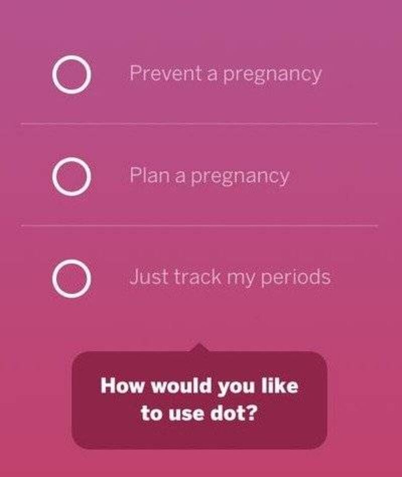 La información se obtuvo por la forma en que cada usuaria personaliza su configuración al descargar la aplicación, teniendo tres opciones que son: 'Prevenir un embarazo’, 'Planear un embarazo’ y 'Solo registrar mis periodos’.