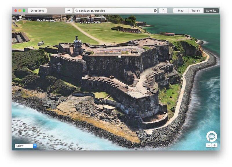 Curiosamente, aunque la página de Apple especifica que San Juan cuenta con la opción de Flyover, esta no aparece. No obstante, sí podemos recorrer la ciudad en 3D y ver monumentos históricos increíblemente recreados en 3D como El Morro, El Castillo San Cristobal, La Perla y hasta un crucero.