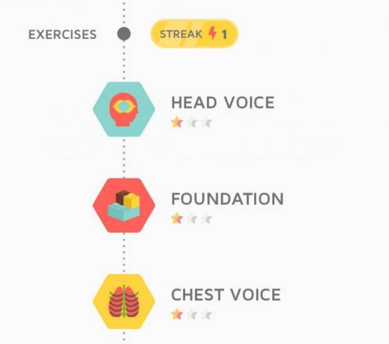Cada día podrás hacer tres actividades vocales, los cuales se dividen en cuatro categorías: agilidad, base, voz de pecho y voz de cabeza. Cada actividad te reta a escalar en tu rendimiento a través de un sistema de tres estrellas, con el que podrás obtener experiencia y subir de nivel como si se tratará de un videojuego.