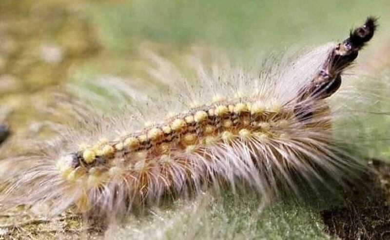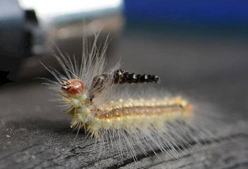La oruga australiana mide unos dos centímetros aproximadamente. Entonces logran apilar hasta siete cráneos anteriores para armar su sombrero defensivo y así disuadir a los que intentan comerla.