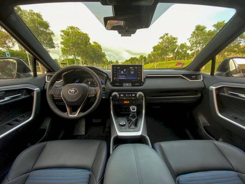 Personalmente, la XSE Hybrid es mi favorito de toda la línea RAV4. La XSE añade principalmente una suspensión deportiva y diversos detalles en negro que hacen un excelente contraste con el color principal. El interior no ve mayores cambios salvo algunos detalles y costuras en azul además de un panel de instrumentos específico para los modelos híbridos. Me gustó mucho el detalle del selector de los modos de manejo que prende según el modo seleccionado: Azul para Normal, Rojo para Sport y Verde para Eco. Al igual que el modelo convencional la construcción es de primer nivel al igual que la mayoría de la selección de materiales.