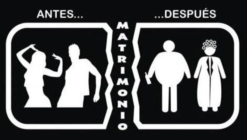 Un estudio de la Universidad de Carolina del Norte encontró que las personas que se casan antes de cumplir 28 engordan entre 24 y 26 libras en los cinco años posteriores a su boda. Penny Gordon-Larsen, autora de la investigación, sostiene que si bien los solteros de la misma edad aumentan alrededor de 8 libras en un periodo similar, los matrimonios engordan más pues son cómplices en sus malos hábitos de alimentación.