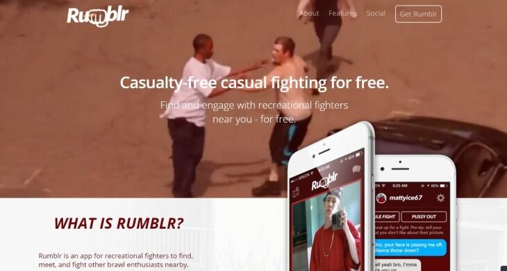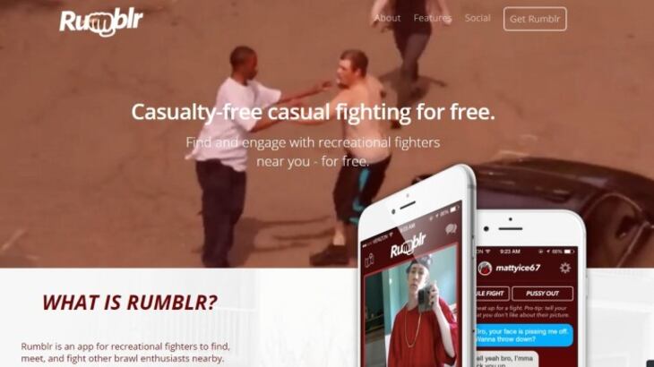 La página web de Rumblr dice que la aplicación es una para que peleadores se encuentren. Los mismos se reúnen y pelean con otros con los cuales tengan riña, cerca de sus alrededores.