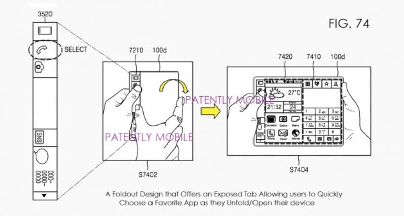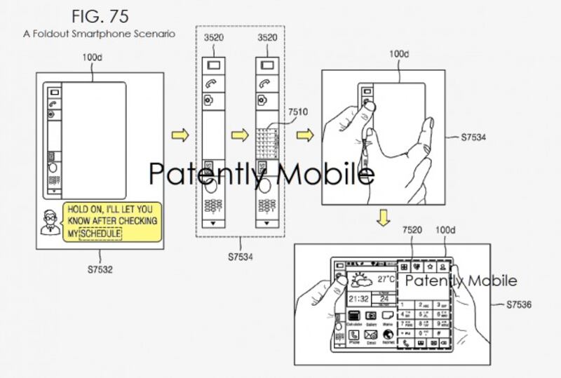 De acuerdo a documentos enviados a la Oficina de Patentes de Estados Unidos, la compañía coreana buscaría desarrollar teléfonos con pantallas OLED que pudiera enrollarse, doblarse como cartera, o adoptar otras formas para ser más portátiles, permitiendo incluso que la interfase se adapte a la pantalla, mostrando por ejemplo una barra de íconos o notificaciones mientras el resto se encuentra doblada.