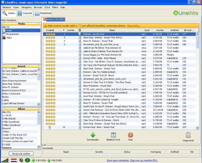 Limewire, Kazaa, Ares