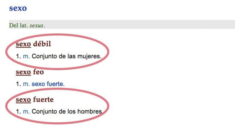 Si vas al diccionario de la Real Academia Española y buscas la palabra “sexo”, también se encontrará con la definición de “sexo débil”. Lo que ellos consideran que es un “conjunto de mujeres”, mientras que la definición de “sexo fuerte”, es considerada como un “conjunto de hombres”.