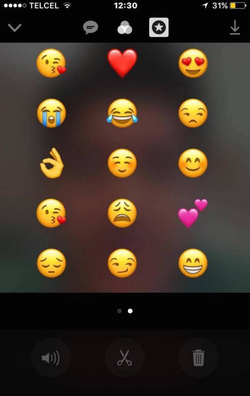 Agrega cualquier emoji. La página de emojis en el navegador de superposiciones muestra los emojis que has usado de manera reciente, pero puedes agregar cualquier otro emoji a tus videos de Clips. Simplemente toca un emoji existente para seleccionarlo, luego usa el teclado estándar de emojis para elegir uno nuevo. Y después, el nuevo emoji aparecerá en el navegador de superposiciones.