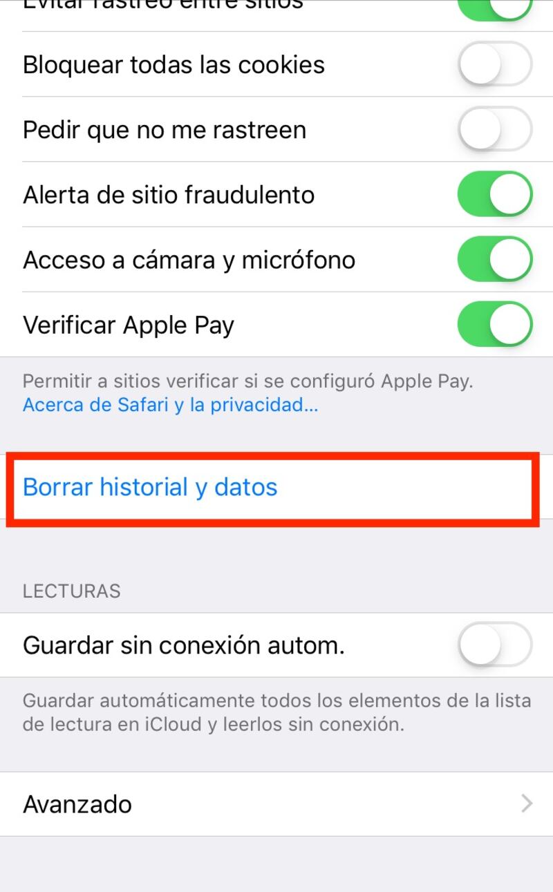 Tan solo debes ir a ’Ajustes’ y buscar ’Safari’. Una vez dentro de esta opción, deberás bajar hasta “Borrar Historial y datos”. Así sistema te pedirá confirmación del proceso, y cuando lo hagas, comenzará automáticamente a deshacerse del caché.