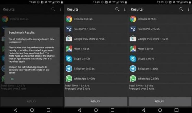 Para demostrar esto, hicieron pruebas cronometradas abriendo y cerrando aplicaciones midiendo tiempos con la herramienta DiscoMark (disponible en Google Play). ¿El resultado? Los teléfonos sin Facebook son 15% más veloces. Por supuesto, esta cifra puede variar y ser mucho mayor según las aplicaciones que tengamos instaladas.