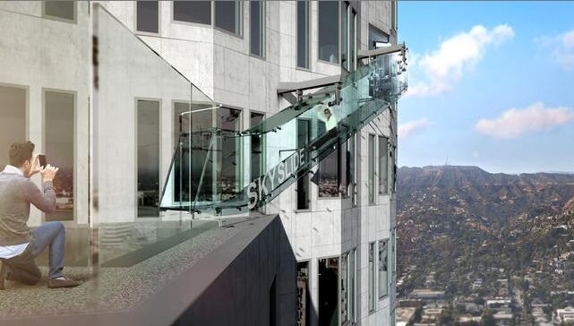 La torre US Bank de Los Ángeles recientemente inauguró su nuevo espacio: una torre de observación con un restaurante y espacio para actividades en el piso 70, pero eso no es todo. Como parte de su nueva atracción, también inauguraron una chorrera que baja del piso 70 al piso 69. Lo curioso de esto es que la chorrera está fabricada en cristal, mide 45 pies de largo y tiene un grosor de una pulgada y cuarta, lo suficiente para deslizarte a tu muerte (probablemente no, pero es un rush).