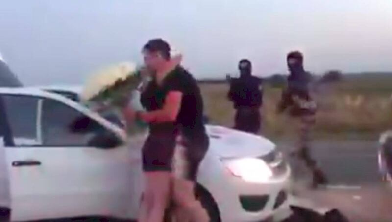 Sí, así mismo como lo lees. Y es que ayer, lunes, un usuario de Twitter llamado “Minions Argento” compartió un video en el que se puede ver cómo una camioneta negra intercepta a un auto blanco en plena autopista y se baja un grupo de policías militares que, a punta de pistola y de armas largas, obligan a salir al conductor del vehículo y a su novia, los tiran sobre el bonete del carro, los registran y les terminan encontrando una bolsa sospechosa dentro del auto.