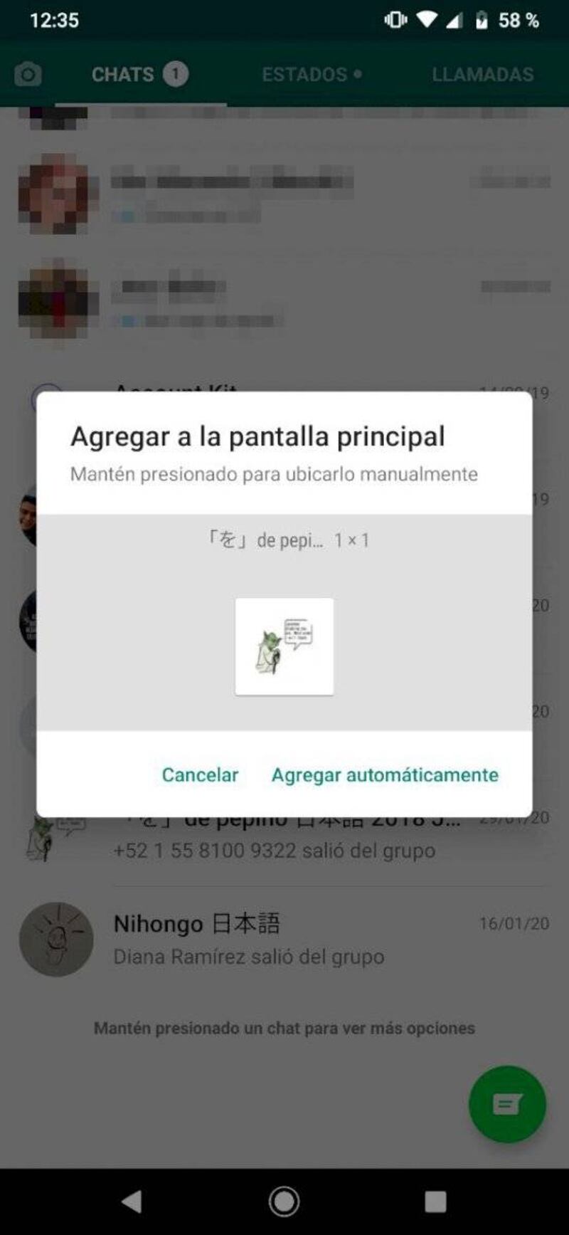 Una vez que selecciones esa opción, podrás acomodar el chat en la pantalla principal de tu teléfono, por lo que tendrás la oportunidad de abrir este chat en especial sin tener que abrir primero WhatsApp.