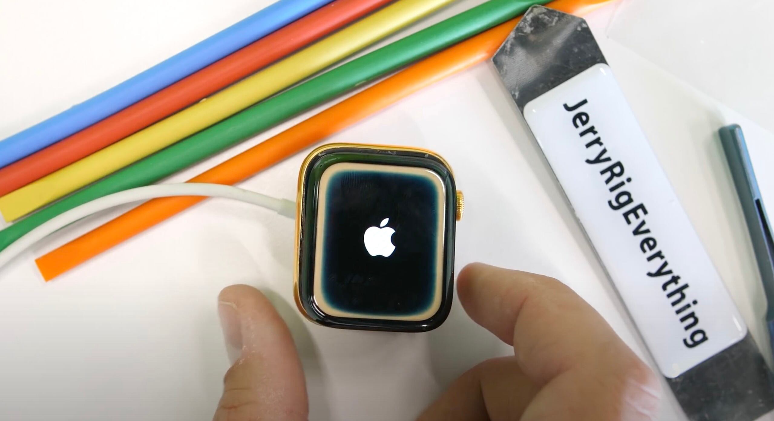 Sucede que hace un tiempo logró convertir Apple Watch’s “normales” en versiones de oro de 24 kilates, los cuales entregó uno a su esposa y otro a su amigo del canal What’s Inside. Este último lo perdió en un lago y pasaron 9 meses hasta que un buzo lo encontrara y se lo devolviera.