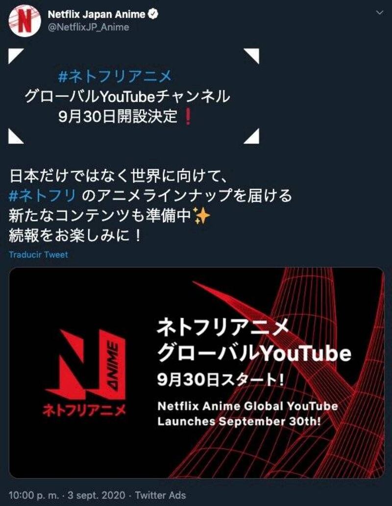Por medio de una publicación en su cuenta oficial de Japón en Twitter, Netflix decidió dar a conocer que a partir del 30 de septiembre ellos lanzaran un canal de youtube que todos los amantes del anime amarán, pues este se enfocará en puro entretenimiento animado del país del sol naciente.